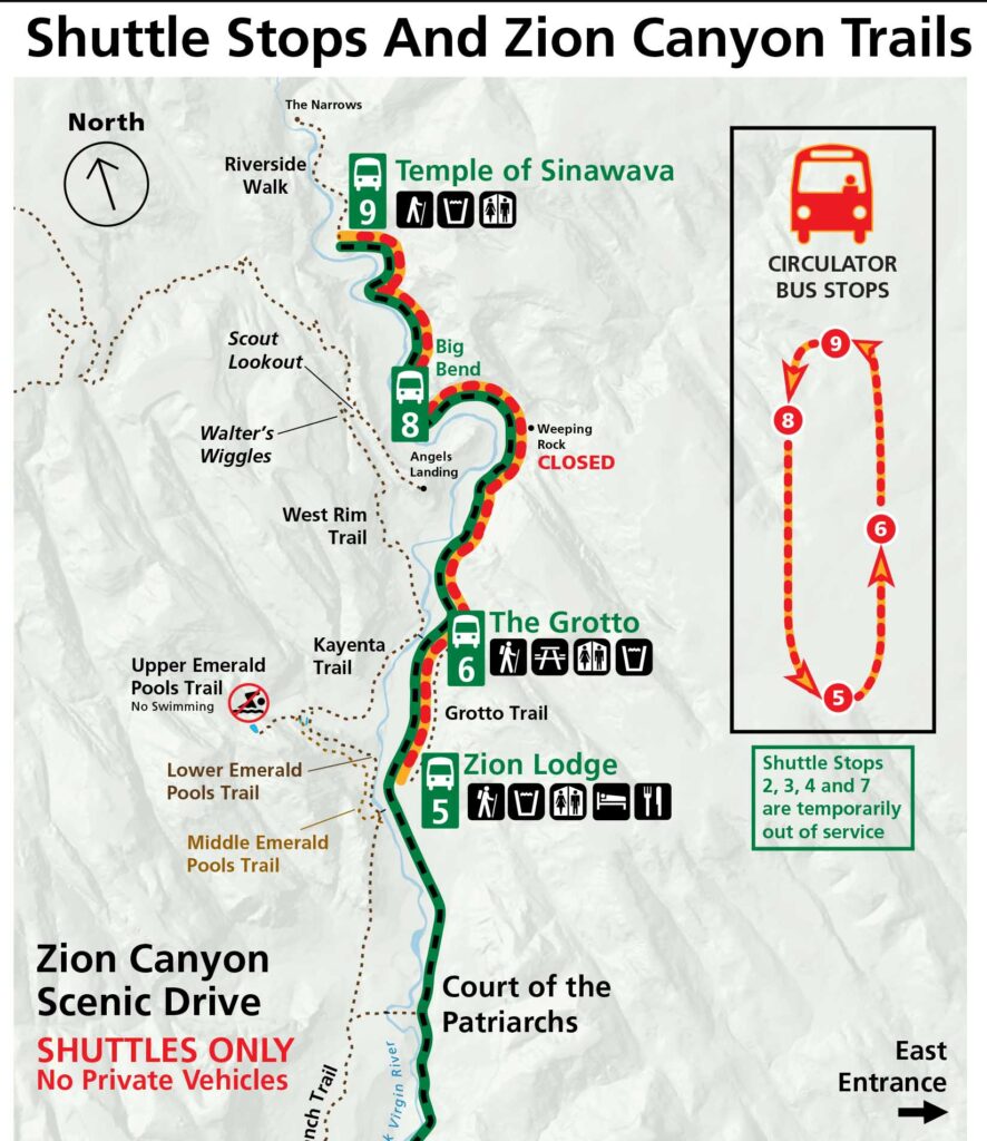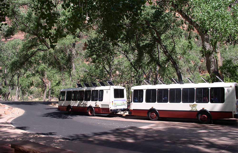 여름철은 자이언캐니언 안의 관광은 공원에서 운영하는 셔틀버스만을 타고 합니다. 셔틀 버스는 탑승권을 구입해야 했었으나 코로나 사태에 따른 운영방침 변경으로 탑승권 방식을 중단하기로 해서 무료 탑승을 2021년 5월 28일 부터 시행합니다.