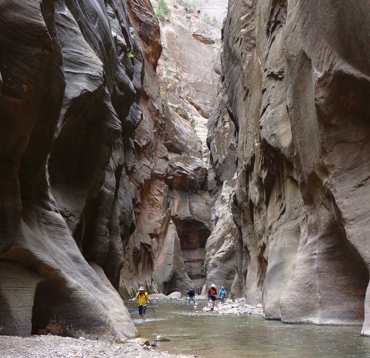 셔틀 노선의 종점에 있는 시나와바 신전은 강에 의해 만들어진 자연 원형 극장같은 곳의 이름입니다. 이 이름은 남부Paiutes원주민이 믿고 있는 타부츠와 시나와바라고 부르는 쌍둥이 창조신 이름에서 유래되었습니다. 여기서 시작하는 트레일Riverside Walk는 강을 따라 올라 갑니다. 왕복 2마일이고 약 1시간이 걸린다고 합니다. 자이언 캐니언의 시작인 Narrows협곡을 체험할 수 있습니다. 매달려 있는 정원을 보며, 사암을 가까이서 자세히 보고 즐길 수 있습니다.